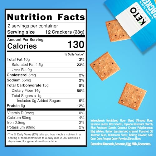 Variety pack keto crackers with almond flour – multiple flavors for low-carb snacking. Zero carb, no sugar, gluten-free. Crunchy and flavorful – great for mixing tastes or trying different options on keto diet.